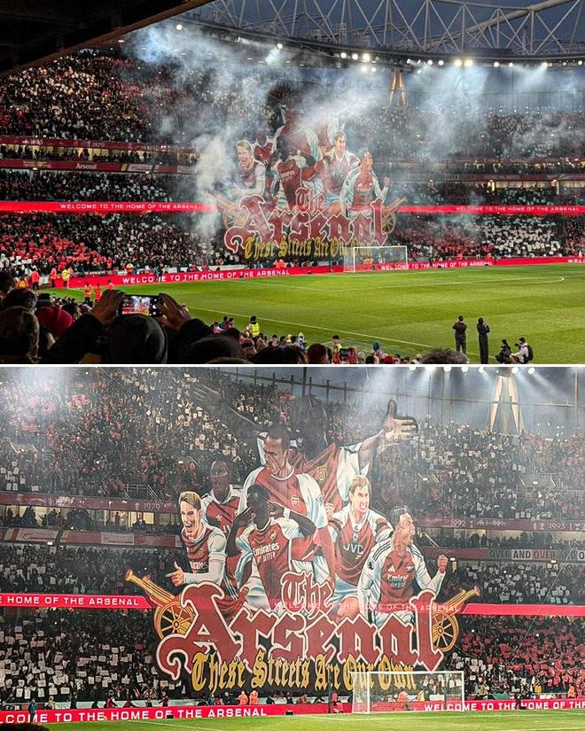 该Tifo最上端是曾效力过阿森纳以及热刺的名将索尔-坎贝尔,曾在热刺长期效力并出任过热刺队长的他在2001赛季转投阿森纳,在当时引起轩然大波。下方则是阿森纳传奇球星、阿森纳队史进球纪录保持者亨利,他曾在北伦敦德比战中打入多粒精彩进球。其余上榜的球员还有传奇射手伊恩-赖特、“阿森纳先生”托尼-亚当斯以及萨卡、加布里埃尔等现役球员。