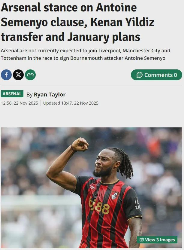 镜报和伦敦足球记者RT消息,关于塞梅约的竞争现在已经开启,但目前来看,阿森纳无意参与冬天对这名边锋的争夺战,因为在经历了一个繁忙的夏窗之后,枪手打算度过一个安静的冬窗。塞梅约合同中6500万英镑(6000+500)的违约金条款将在一月生效,利物浦、曼城和热刺都在争夺这名25岁的球星,但阿森纳并不打算介入,因为尽管北伦敦豪门依然符合PSR政策,但在满足欧足联的财务要求方面有一些亚力,除非阿尔特塔的球队出售球星,否则一月份买人是不现实的,不仅如此,阿森纳对自己的阵容也很满意。不过到了夏天,情况就会有所不同,阿森纳会评估左边锋位置,因为马丁内利的合同2027年到期,虽然有延长条款,但假如阿尔特塔想升级该位置,那么就可能会有所行动。据悉,贝尔塔正在密切关注伊尔迪兹,但这在行业内被认为是标准动作,而不是什么重大进展,并且球员的经纪人依然在和尤文谈加薪续约,虽然双方至今没有取得积极进展,但伊尔迪兹的合同2029年才到期,因此即便转会也必然价格不菲。除此之外,阿森纳还在关注一些未来之星,包括20岁的雷恩中卫雅凯以及皇马19岁的后防新星维克托-巴尔德佩尼亚斯(中卫和边后卫都能踢),不过阿森纳将在雅凯的交易中面临激烈竞争,并且这名新星也不愿意放弃稳定的出场时间来北伦敦板凳坐穿。RT的消息也还可以,但肯定不算是跟队权威记者那种,先看看吧。我也认为阿森纳不会追求塞梅约,其实这个价格真是相当合适,但排除财政的问题,关键在于阿森纳现在没有位置给他。左边右边人都很满了,除非明年卖掉小马丁或者特罗萨德,否则这阵容怎么排……而且我认为这个赛季不用再买人,用好手里的资源,完全够英超夺冠的!明年夏天再说其他。只不过塞梅约到时候可能已经被抢走了……我看现在的情况,他一月份就可能转会。伊尔迪兹看来确实是感兴趣的目标之一,但原文也说了,这种观察是正常的,不代表有进展。雅凯和巴尔德佩尼亚斯都和阿森纳有过传闻,其实BBC的SM还报道过阿森纳和雅凯的消息,所以不是无中生有的。但问题是,还买中卫?而且哪个年轻中卫现在敢来阿森纳啊……明年一旦买断因卡皮耶,后防线到处都是人,莫斯克拉都要竞争出场时间,哪个年轻中卫能获得比赛时间……加布和萨利巴都续约了,再用五年也没问题,根本没空间了。所以等等再看吧。今晚的比赛先拿下!