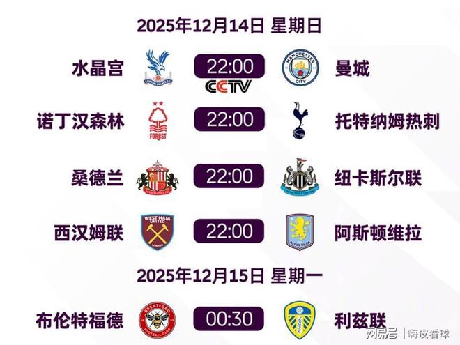 周末,英超第16轮展开争夺,周日一共安排了5场比赛,除了阿森纳之外,前四名的球队悉数亮相。维拉冲击11连胜的古老纪录,曼城则随时等待反超阿森纳,央视周末将直播两场豪门的比赛,敬请关注。阿斯顿维拉客场挑战西汉姆,相信会受到不少球迷的关注。维拉刚刚在欧联杯击败巴塞尔,是积分最多的球队,因为净胜球劣势排在第三名,只要多赢一场,基本上就能锁定前八名。欧联杯,我最熟悉了,除了埃梅里之外,也许没有人可以说出这句话,阿斯顿维拉自然成为冠军的最大热门。上轮,维拉击败阿森纳之后,排名上升到第三位,想想看,两个月前,维拉5轮不胜跌至降级区,如今摇身一变加入争冠行列,跟利物浦是完全相反的两个故事,谁又能想得到呢?阿斯顿维拉从下周末开始,连续遇上曼联、切尔西,再次挑战阿森纳,面对三大豪门的结果如何,可以知道是否有争冠的实力了,因此本轮面对西汉姆,是必须全取三分的比赛。统计表明,最近各项赛事的8连胜,是阿斯顿维拉在顶级联赛参赛的情况下,自从1914年以来最长的纪录,那一次豪取11连胜,如今可以做到吗?热刺客场挑战诺丁汉森林,对于双方来说都不容有失,两队刚刚参加了欧洲比赛都取胜,巧合的是,两队在欧冠和欧联杯的排名都是一样的,都是第11名,保留着冲击前八名的希望。戴奇率队以来,展现出保级大师的风采,3场联赛胜利脱离了降级区,虽然保级压力还是很大,但是跟两个月前波斯特科格鲁下课时的困境,是完全不同的局面。热刺近况有点糟糕,上周击败布伦特福德,是最近6场英超的首胜,所以也跌出了前十名,双方对于三分的渴望都是相同的。曼城客场挑战水晶宫,周日安排在央视直播,周六则直播切尔西的比赛。这个赛季的曼城,并没有出现上赛季那样的波动,一直不愠不火,似乎有些平淡,换来的是排名稳步上扬,目前只落后阿森纳2分,随时等待着反超对手。同样,水晶宫的表现也不差,特别是三次击败利物浦,令人刮目相看,让人有更多的期待,成为欧协联夺冠的热门。水晶宫面临的难题是,所有赛场都没有淘汰,几天后还要在联赛杯八强跟阿森纳碰面,连续的一周双赛,显然是十分吃力的。还有格伊在冬季转会窗是否离开,也是不可忽视的问题。对于曼城来说,上赛季足总杯决赛失利,连续两届屈居亚军,再次面对水晶宫,当然想改变结果。自从其他球员开始进球后,曼城的成绩扶摇直上,不完全依赖哈兰德,是很好的信号。需要留意的是,已经得到4张黄牌的多纳鲁马,危机还没有解除,跟席尔瓦一样,多拿一张黄牌就要停赛,直到第19轮结束之后才会改变,变成累积10张黄牌才停赛。剩下两场比赛,分别是布伦特福德主场迎战利兹联,桑德兰主场迎战纽卡斯尔。利兹联连续在切尔西和利物浦身上拿到4分,令人有些惊讶,也是走出降级区的关键,反观桑德兰在连续面对豪门失分,黑马已经褪色。纽卡斯尔在欧冠末段被勒沃库森追平比分,埃迪豪直呼可惜,最近几场表现不错,由于落后分数并不多,只要继续获胜的话,排名可以大幅提升。维拉和曼城,有机会冲击英超冠军吗?