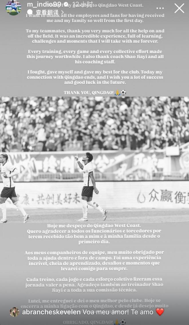 青岛西海岸则继续面临球员离队,球队外援马特乌斯在个人社交账号上发文告别青岛西海岸,表示他与青岛的缘分告一段落。马特乌斯自2024赛季加盟青岛西海岸,总计代表球队出场41场,攻进7球并送出2次助攻。上个赛季其出场27场,贡献5球2助攻。