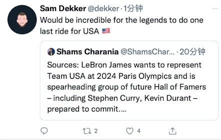 9月11日讯 据名记Shams报道,詹姆斯计划征战2024年奥运会,此外多位超级球星均有意愿出战。